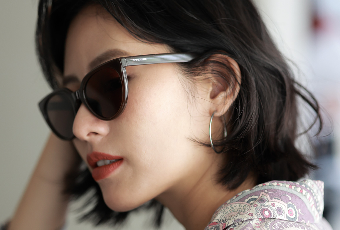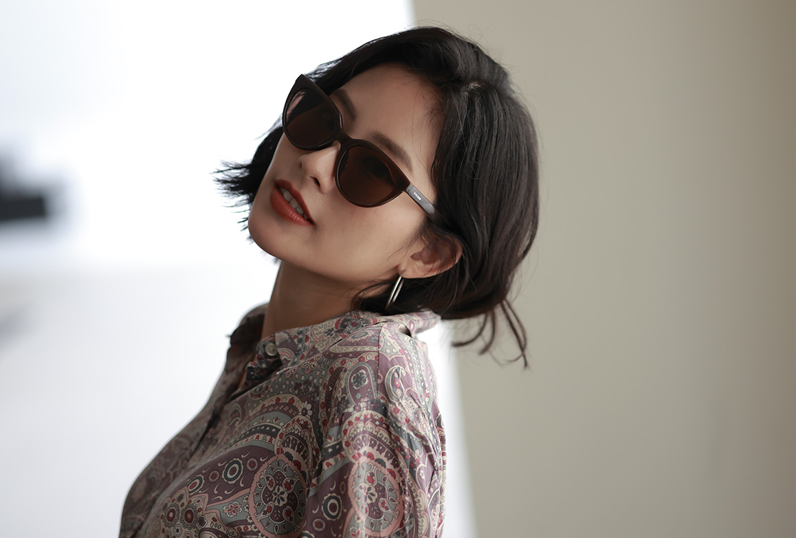 - 醒目的貓眼鏡框上緣微揚的細節有拉提臉部的修飾效果,增強臉部線條輪廓。