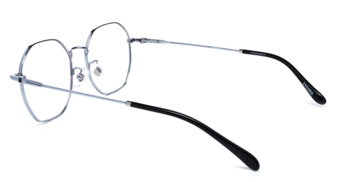 多邊形鏡框集圓框、方框的優點於一身,不挑臉型的顯小臉優勢,令人愛不釋手。冷色調的科技銀全鈦材質具有清亮特質,一戴上即能將膚色完美地襯白一階!- 框型:多邊形框。
