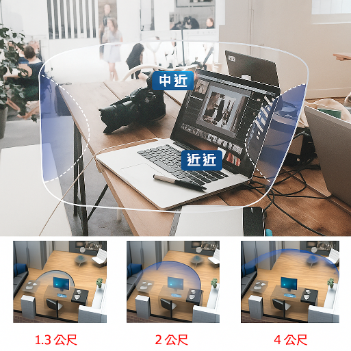 專為室內視覺量身定制,中近距離⾼品質的視覺體驗適合視線範圍1.3公尺 ~ 4公尺距離切換的人群。